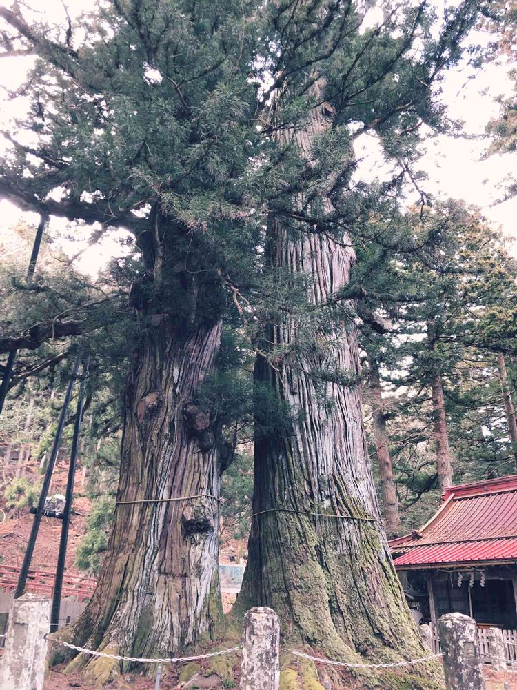 全体はこんな感じ!雄スギと雌スギが寄り添って立っています。かっこいいんだけど微笑ましい逆杉に出会えて癒されました♪