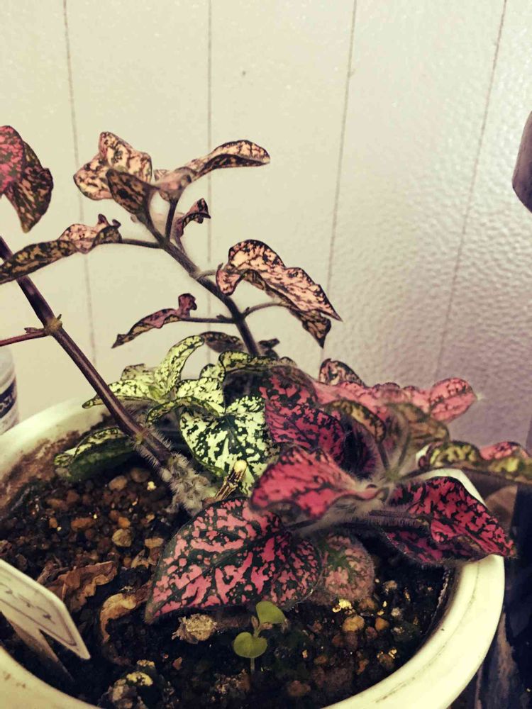 以前にアップした、ヒポエステス。ある時花がさきは、あれよあれよと言う間に、葉っぱが落ち、茎だけ細長く育ち、ほぼ枯れてしまったんですが、鉢の中に落ちた花から、芽がいっぱい出てきました。