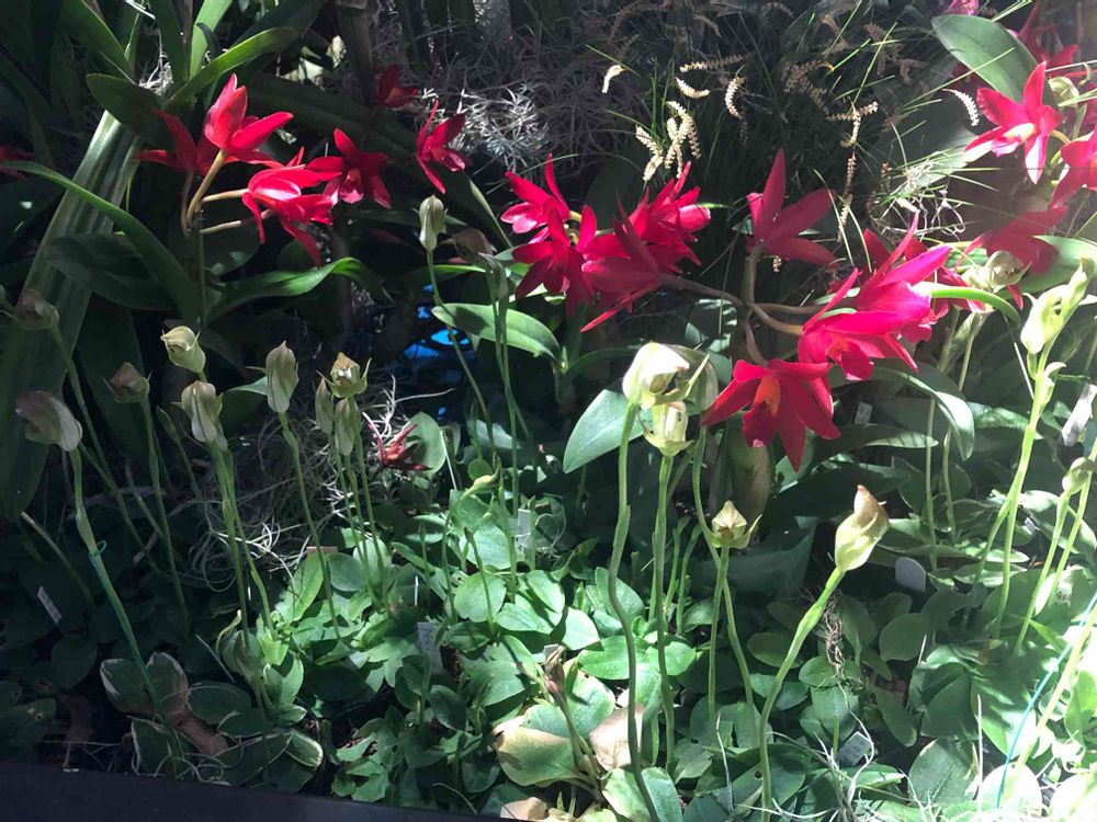 足元に可愛いランがありました😊赤い小さなランとグリーンの不思議な形のラン?の感じが、野に咲く感じ、とても惹きつけられました❣️