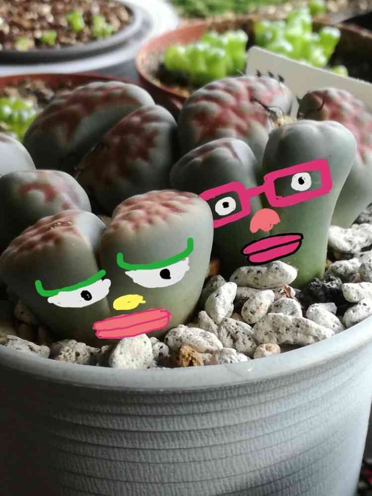 リトープスについに顔がっ🤣🤣🤣 リアルリトプン‼️ 面白いっ😍 パピーダックjr 画伯、さすがですっ👍