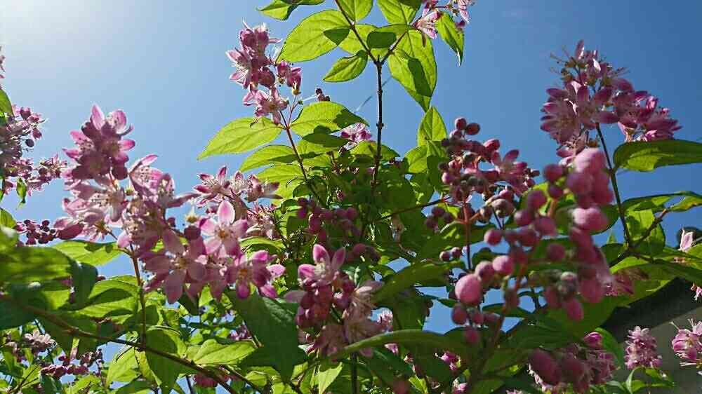 気持ちのいい青空に、可愛いサクラウツギさんの彩が映えますね(*ฅ́˘ฅ̀*)♡︎