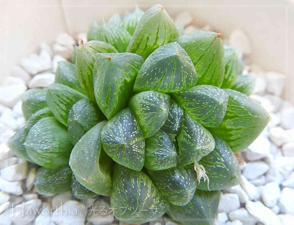 ハオルチア、光るオブツーサ。子株もだいぶん大きくなってきて、親株と子株というより群生株といえるくらいになってきた。