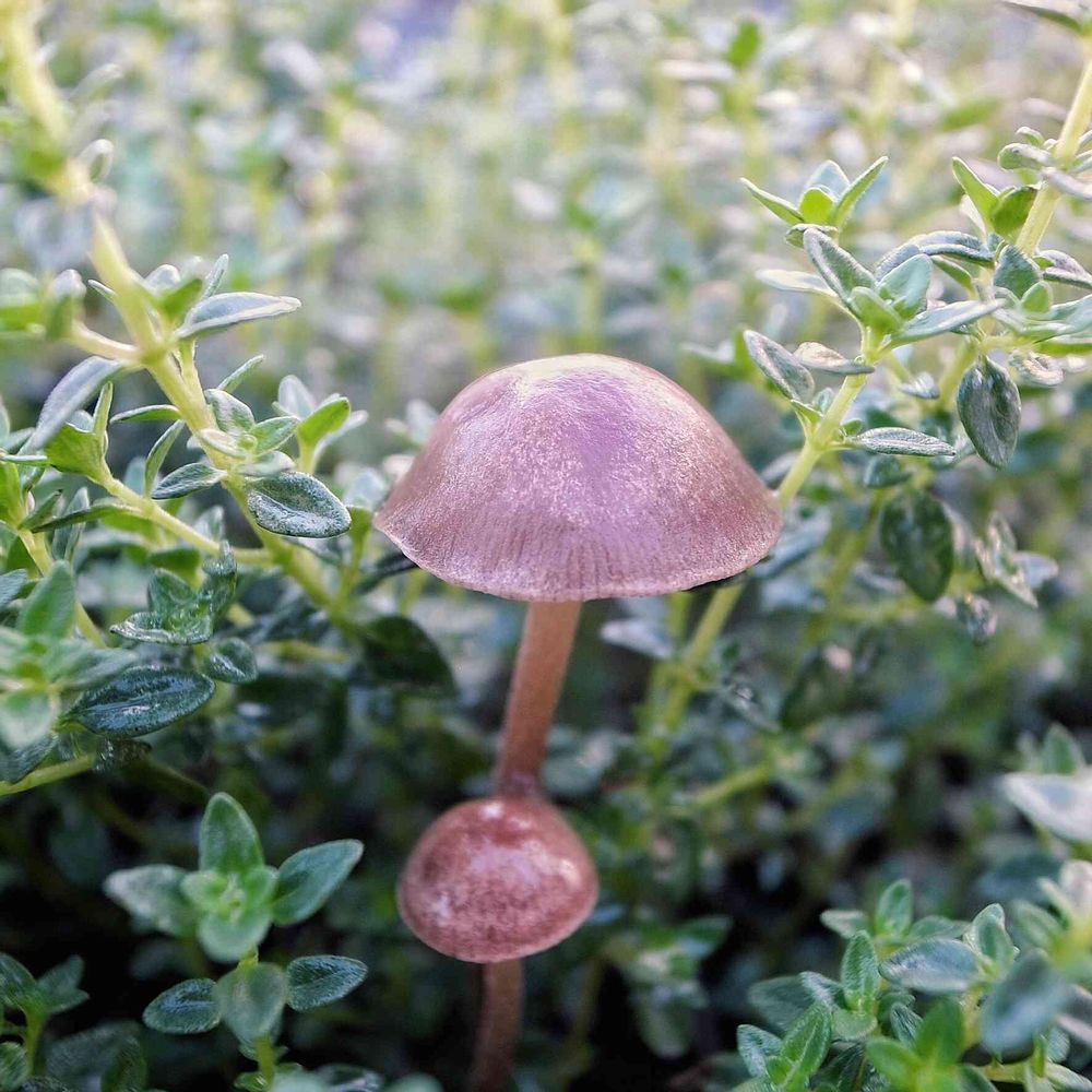 朝靄、レモンタイムの茂みに屹立する、たぶん何とかダケ(御免)。