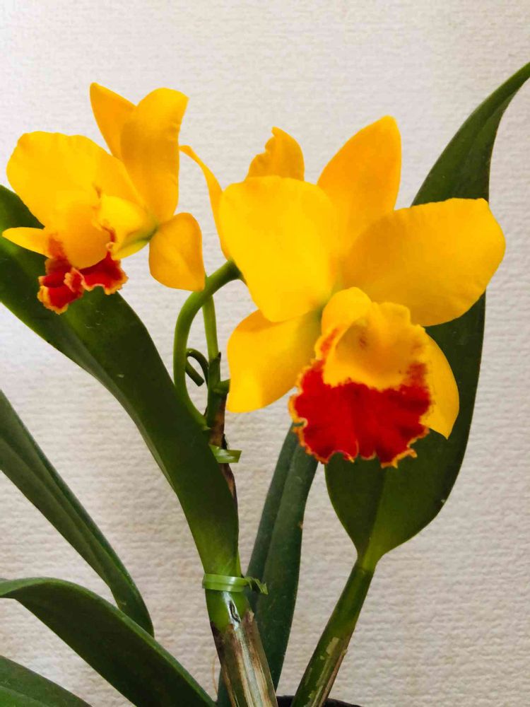 赤と黄色がとっても綺麗なカトレアさん❤️最近ははっきりした色を好むようになってきた気がするんです。年のせいかな😆