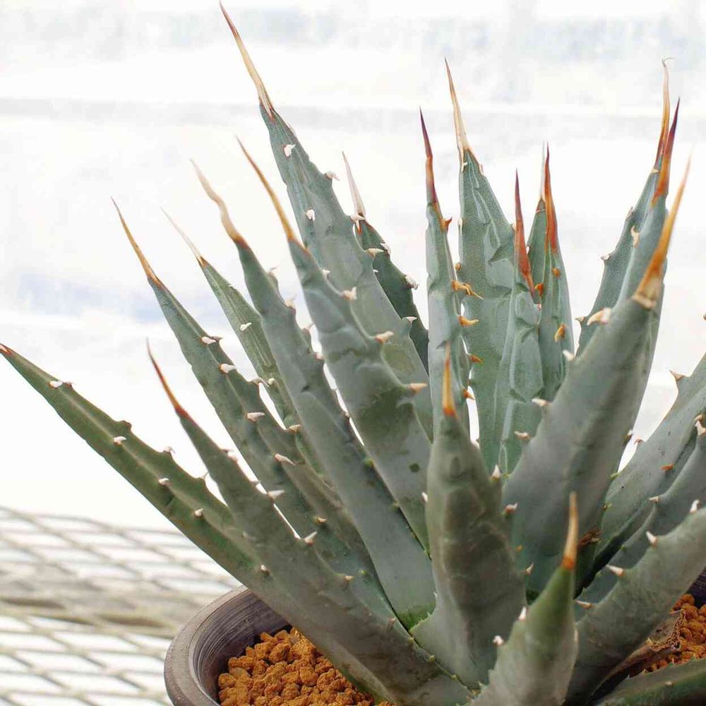 トゲトゲが苦手でないならば…いやむしろトゲトゲしたものが大好きなんです!という人には堪らない、シャープでロングなトゲが凛々しいアガベ「ユタエンシス」@山城愛仙園さん。
