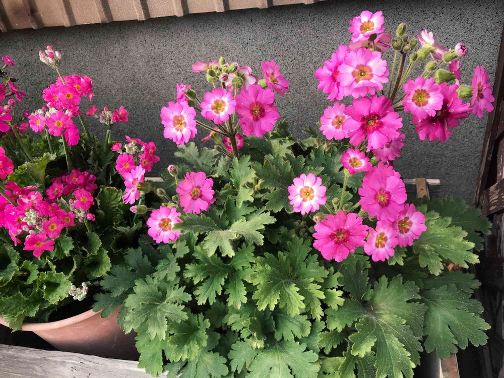 うちのピンクさん達がやっと見頃になりました!右のシネンシスさくら草は冬越し出来ました!何もお世話しなかったけど、置いた場所が良かったのかな?