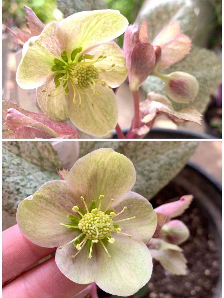 開花を待ち焦がれた ちり斑 のクリスマスローズ😊