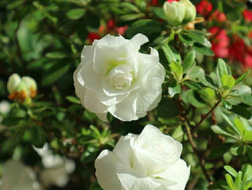 薔薇のように咲くアザレアの花。まるで雪のように真っ白🌸