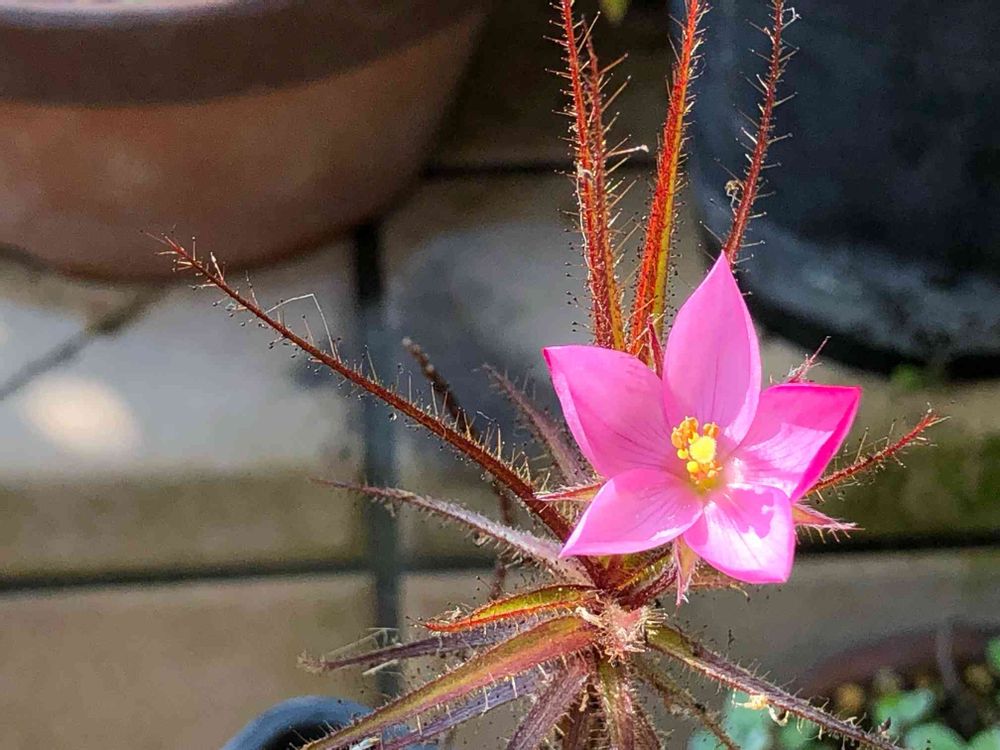 去年の夏、箱根湿生花園の食虫植物即売会で値札にビックリしつつ、大涌谷へ飛び込む気分で連れて帰ったロリズラ ゴルゴニアスです。二本植えで、一本は枯れちゃいましたが、残った一本が花を咲かせました!こんな寒い時期に咲くんですね。