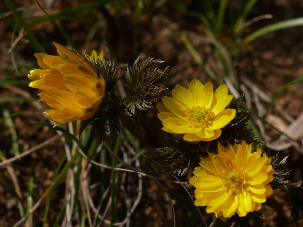 今日、 神代植物公園に福寿草が4株顔を出していました。感激しました(*^_^*)