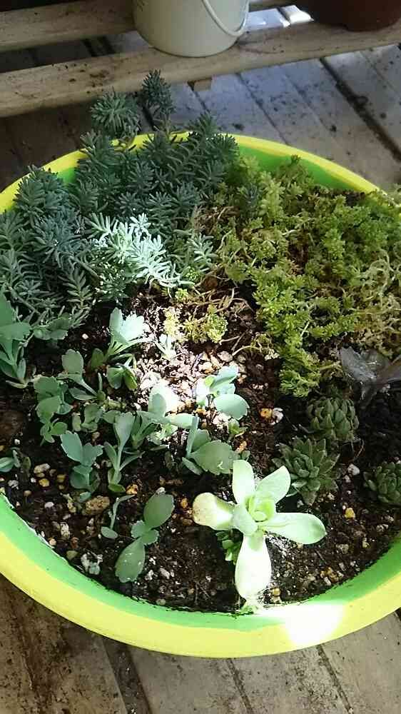ポットの中で窮屈そうだったで子持ち蓮花?みたいな子とセダム鉢の空いた所に寄せちゃいました!