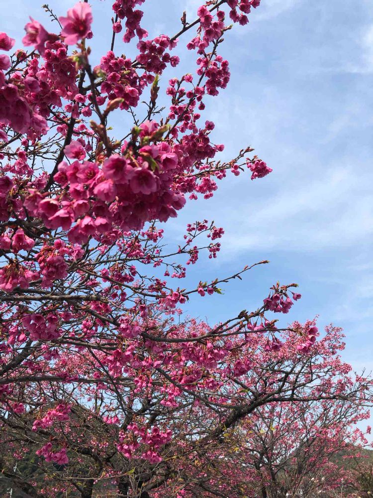お友達と河津桜見たいねって話してて、偶然桜並木を発見✨ナイスタイミング👍