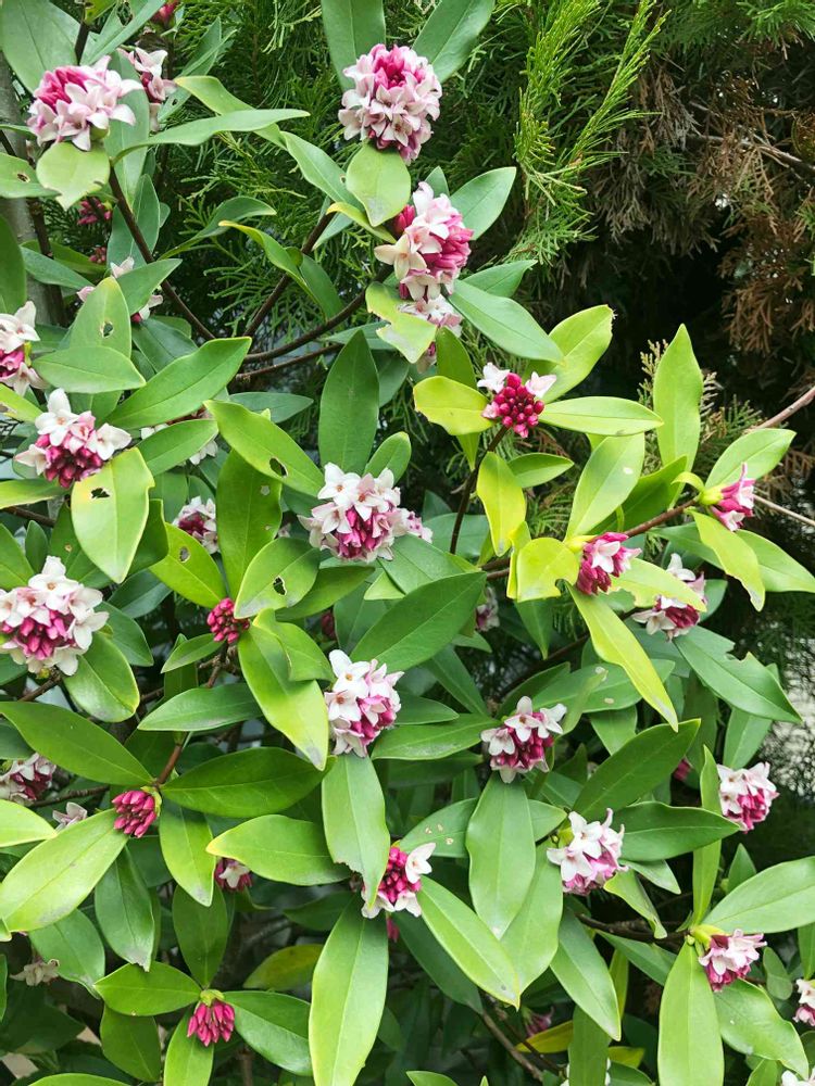 いい匂い〜😊庭の沈丁花の花が咲きました。