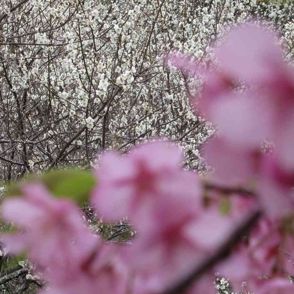 河津桜のピンクの先に白梅がいっぱい・・・・