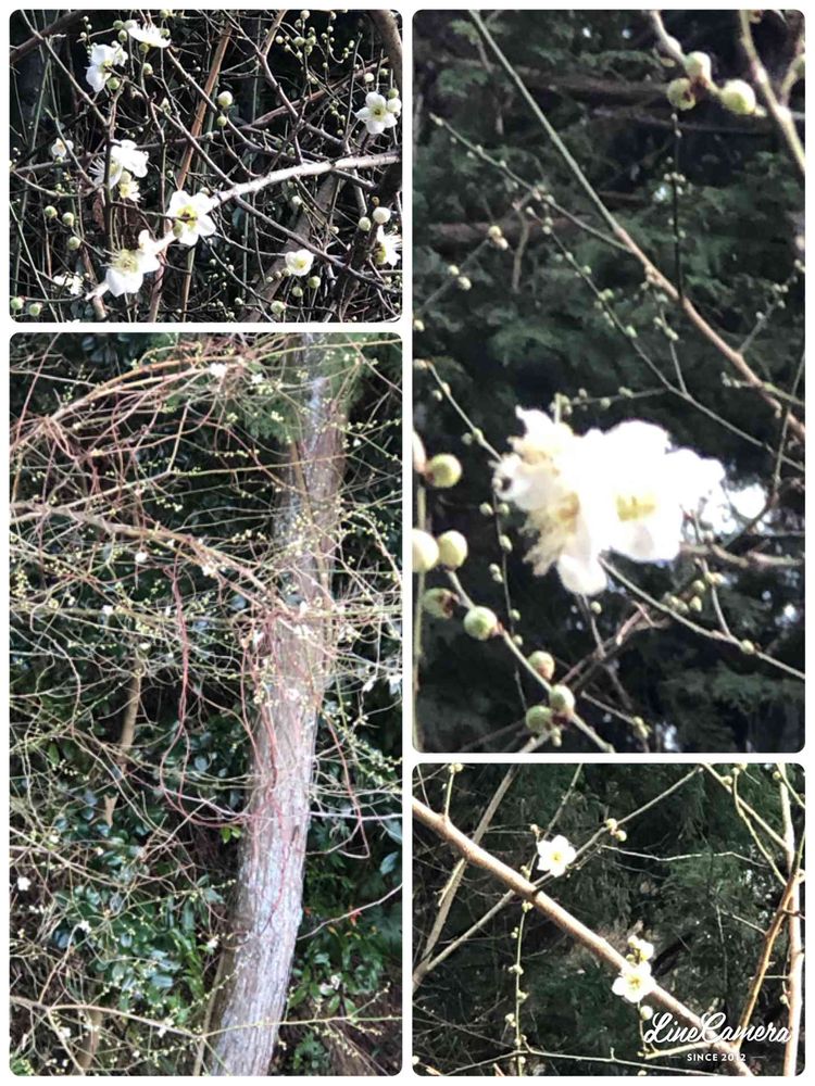 春を探していたら、裏のお山に見つけた小さな白い花、梅の花のようなんだけど、枝ぶりは何か違うような…