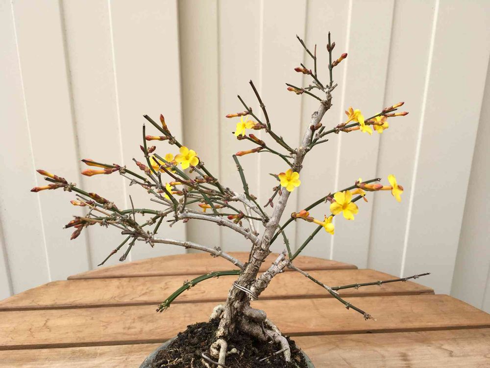 黄梅の盆栽です。 花🌼が咲き始めました。小さな花で可愛いですよ。
