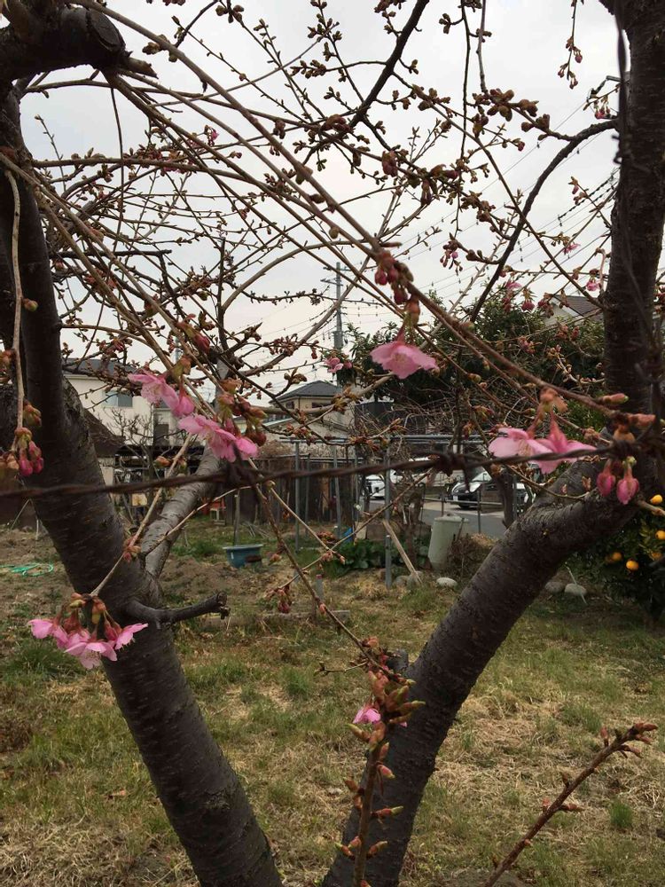 川口ゆかりの安行桜です。2日くらい前に開花しました。
