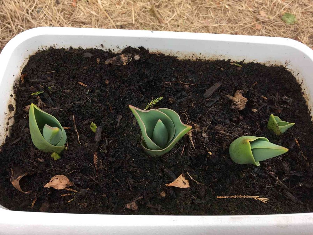 12月半ばに植えた球根から2ヵ月🌱