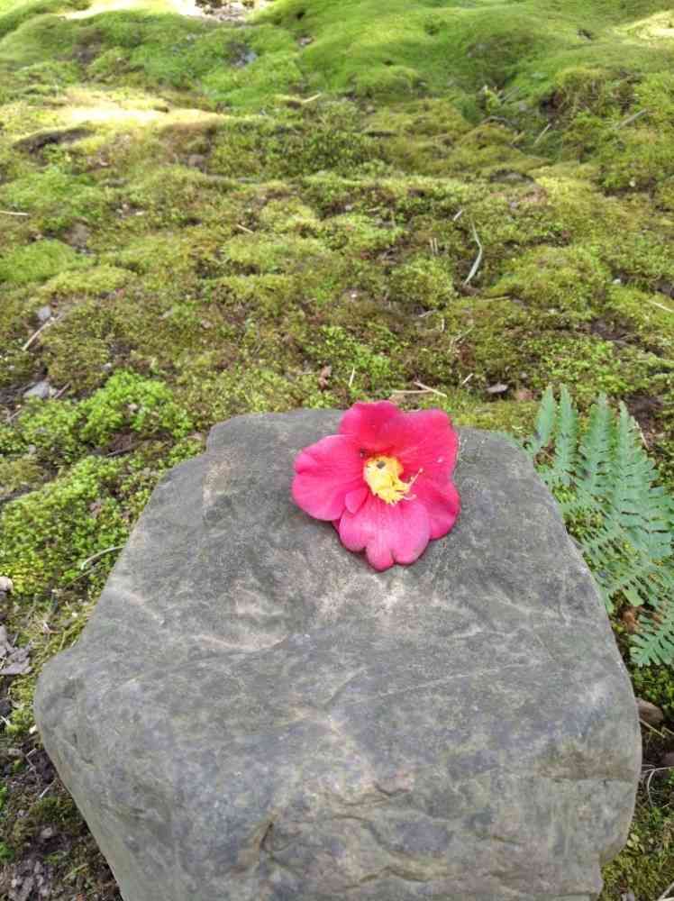 石の上に1輪のちり椿