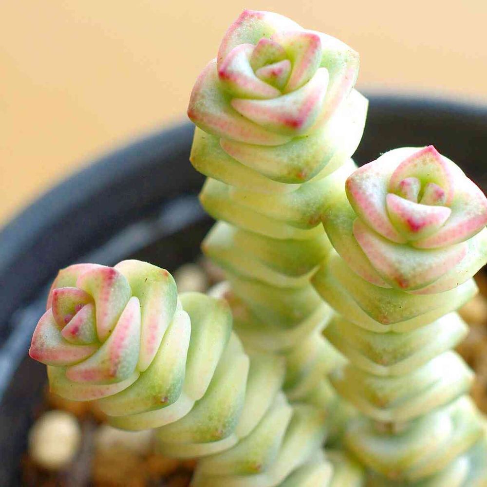 お高い多肉の代名詞「クラッスラ ファンタジー」2017年ごろに1本数cmのカット苗で万単位の根がついたバブリーなコで、流石にそろそろ値段も落ち着いてきたかなーという今日この頃…。Greensnapのカバー画像に使ってる舞乙女 Crassula marnieriana の斑入り種で(全く同じカタチですね)、舞乙女は元気モリモリなので、うちでも量産体制に入ろうか…😎