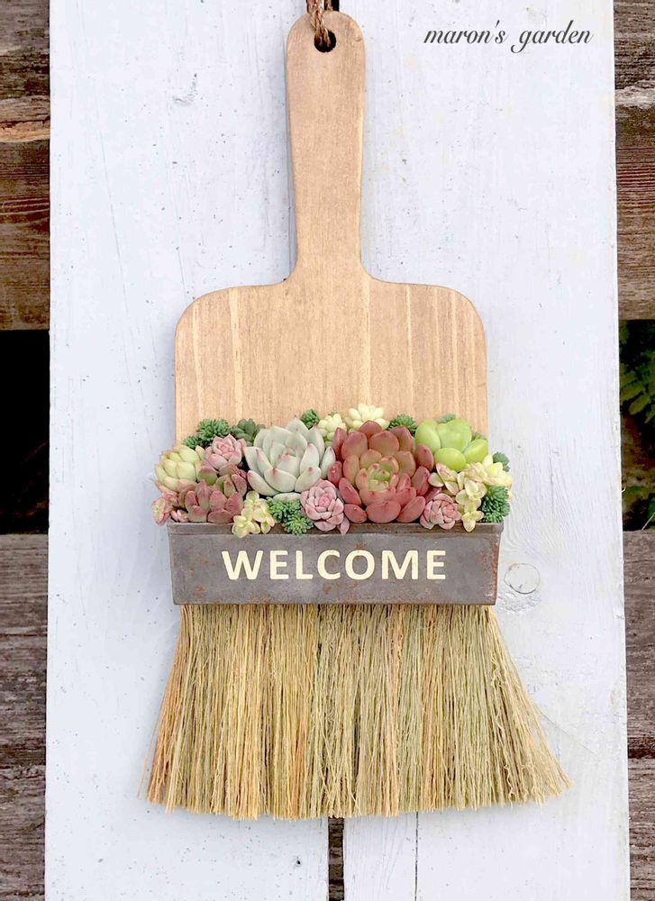 ナチュラルな感じのホウキに小さなプランターがついてて、かわいい〜😆