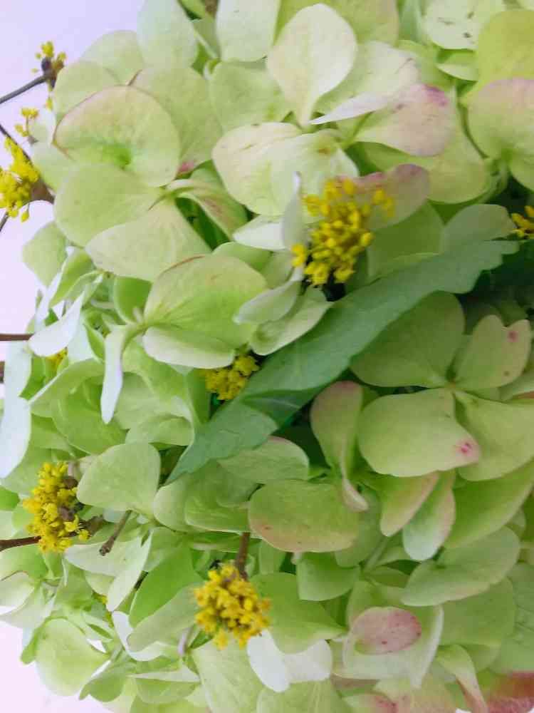 紫陽花にサンシュユ