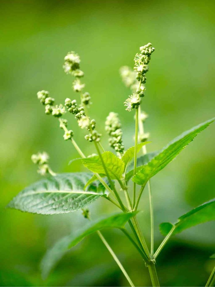 鮮やかな緑の葉っぱと小さな花。