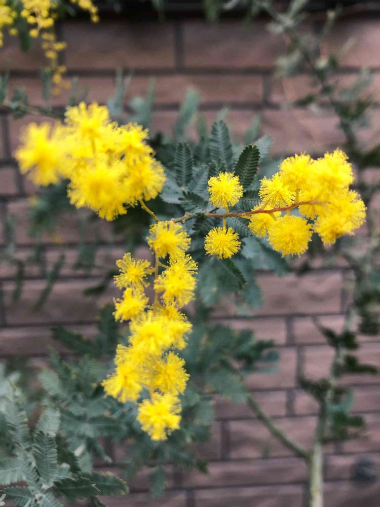 まだ1mちょっとの大きさのアカシアの苗木ですが、お花を咲かせてくれました😊