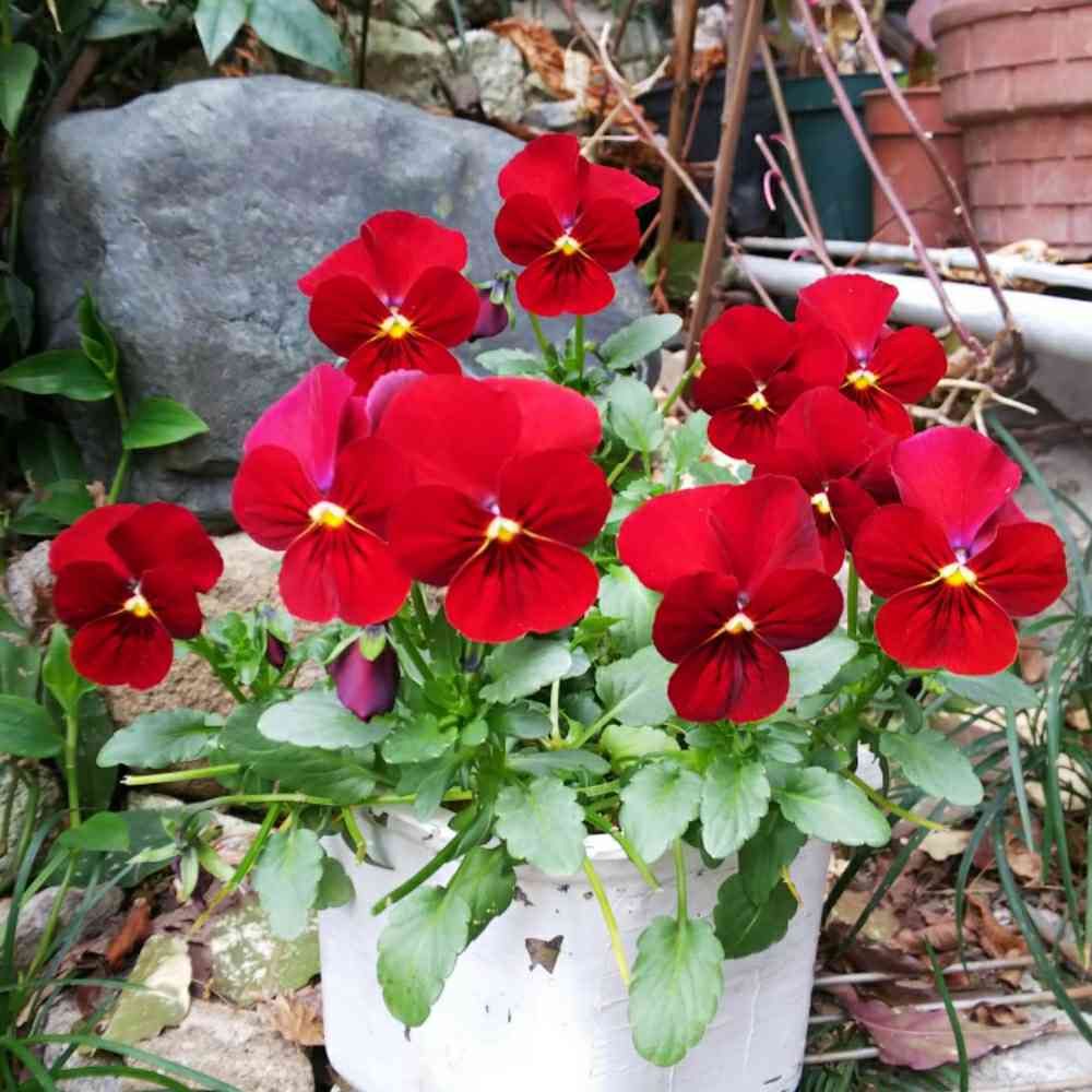 逞しく育っているビオラさん健気でとても可愛いです💕赤が存在感ありますね~🤗❤️