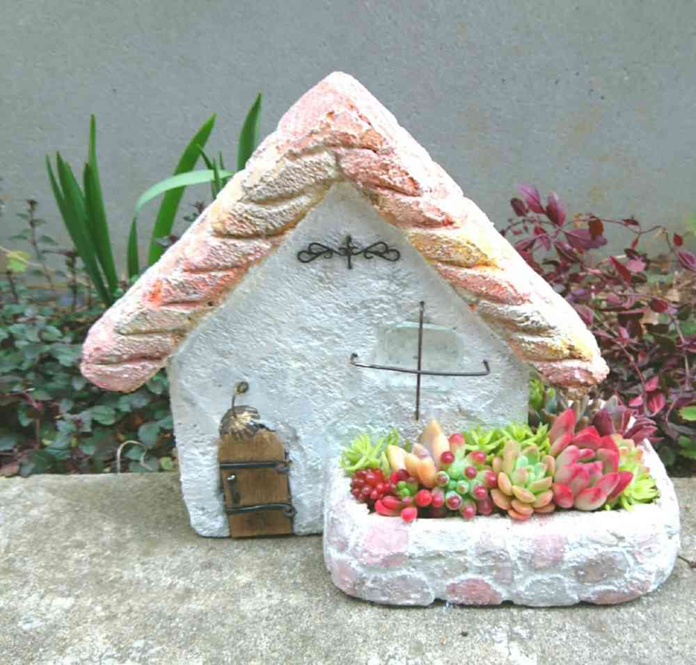 モルタルお家の鉢 多肉が入ると可愛くなるね☺️