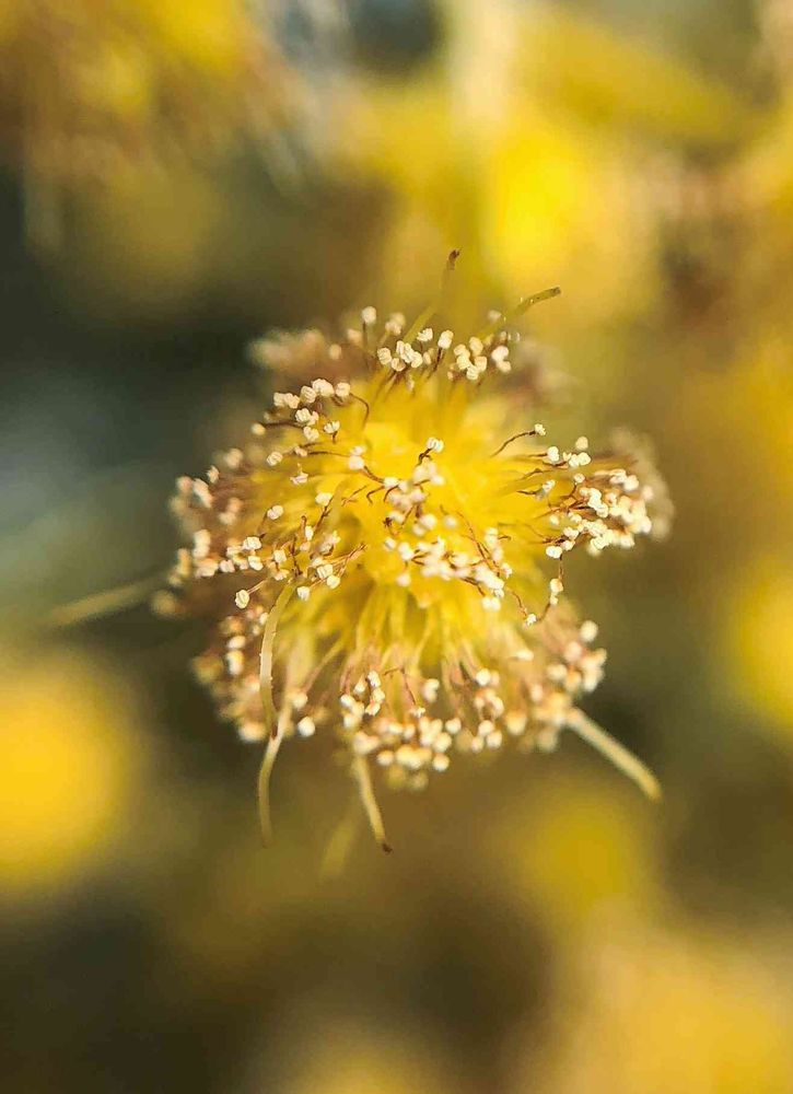 銀用アカシアの花は咲いている時 花弁が中心にあり雄蕊が丸くなって伸びてしまうのでよくかりません葯の付いてないのが雌蕊のようですが…