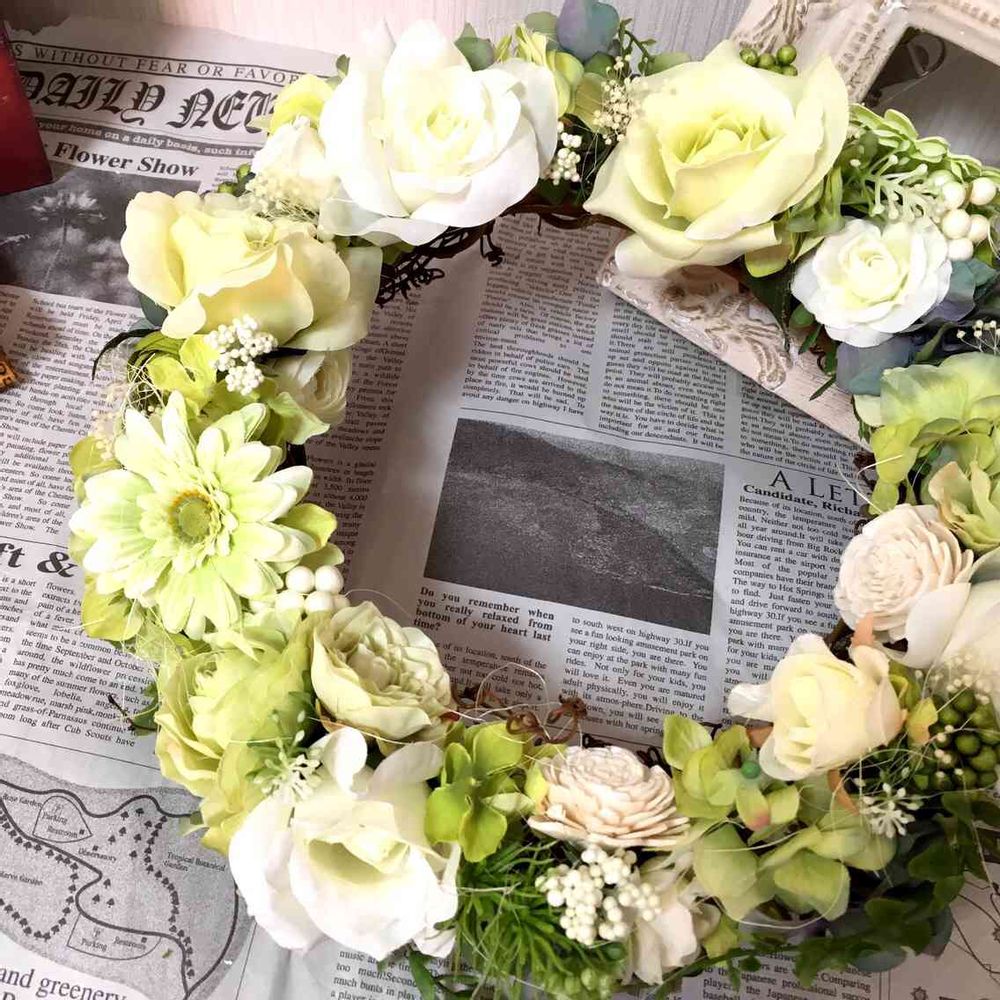 友人から依頼頂いたナチュラルリース♡カラーは王道のグリーン&ホワイトです😊✨