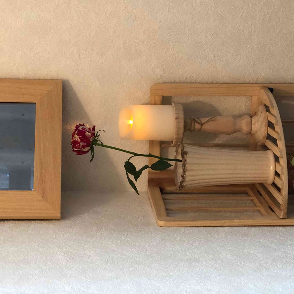壁掛け仏壇「鏡壇ミラリエ」に今日(2/28)の誕生花の「バラ(薔薇)」を飾ってみました。