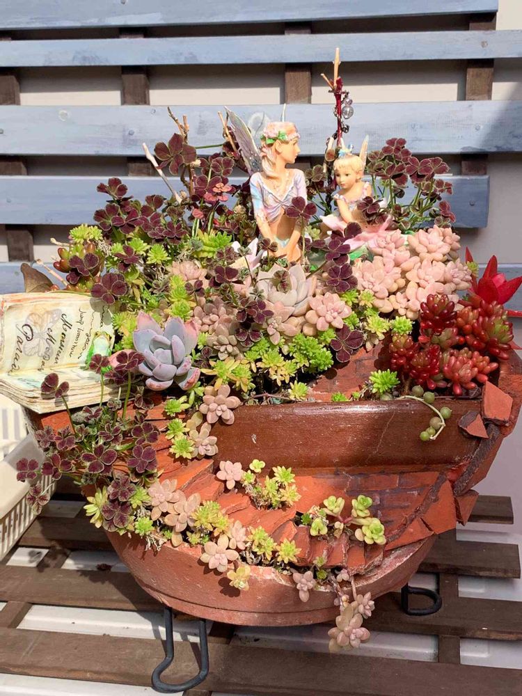 いつかは作ってみたいと思っていたブロークンポット、多肉のベビーも育って、やっと作れました