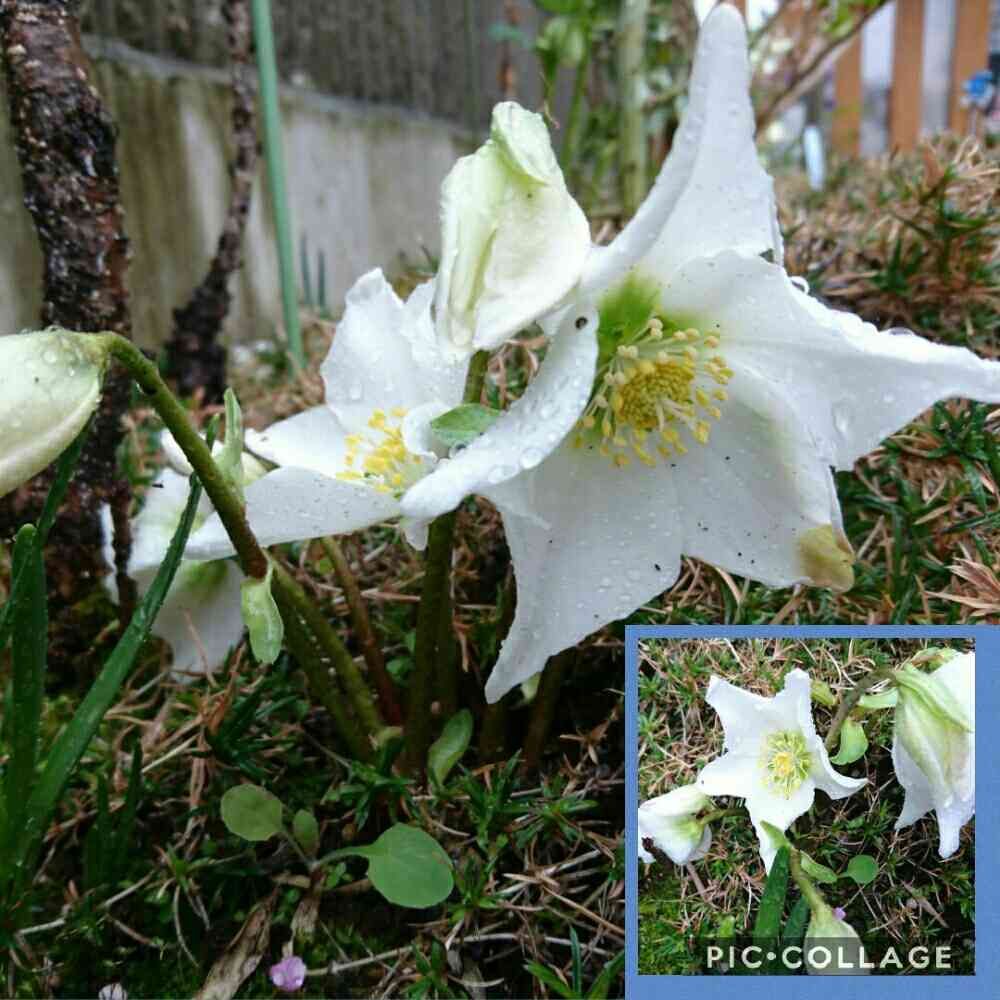 雨の中、ニゲルが咲きました❗この株だけ毎年茎が伸びてこなく、地面の近くで咲いていますが、こういう種類なんですかね?