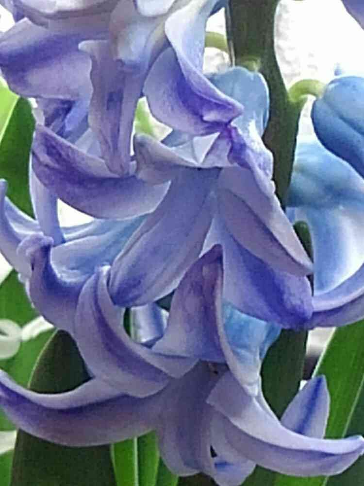 白いヒヤシンスのお隣にあった子が開いたらこんなに素敵なブルーの筋が入った綺麗なヒヤシンスでした💕💕💗💗💗