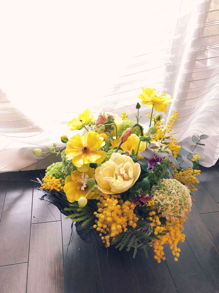 私にとって春といえば黄色。子供の頃、近所の空き地に咲いていた菜の花にタンポポのイメージがいまだに強い。ミモザとは出会って20年くらいになります。当時は花粉症になりそうとお客様からよく言われてました。今や春を告げる人気者✨