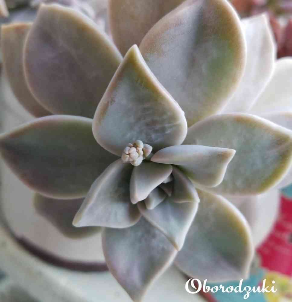 葉の色は白っぽい灰緑色の朧月に花芽が出てきました