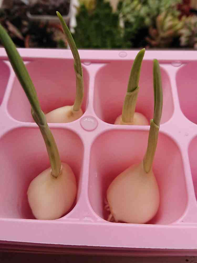 発芽ニンニクって、言うんです。臭みが少なくなるらしくて、まるごと炒めると塩胡椒の味付けだけで美味しいそうです。🎵