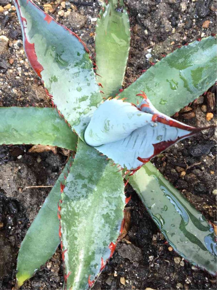 もらった時は小さくて普通のアガベだと思っていましたが大きくなって棘がつながってる❣️なんかヘン⁉️