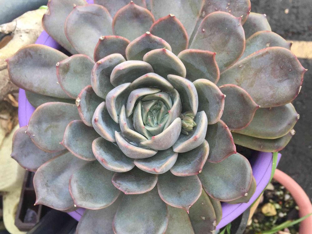 そんな気持ちでいつもの通勤ルートを少し変えて歩いてみると、歩道沿いに置かれた植木鉢で手のひらより大きい位の多肉を発見。