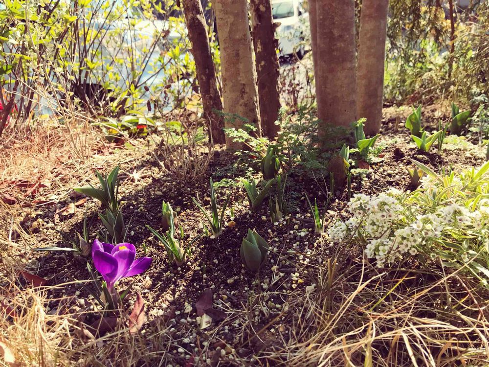 去年の秋ごろ、とりあえず50個くらいチューリップと何かの球根を植えまくったけど、突然1つ開花🌷😍
