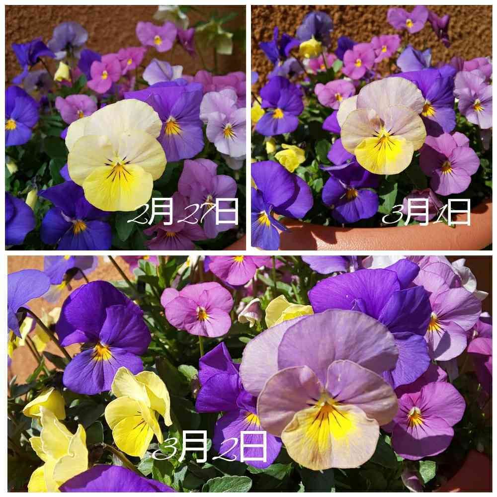 本日3月9日。投稿から1週間たち他のクリームイエローのビオラもパープルにお色直し中です😊