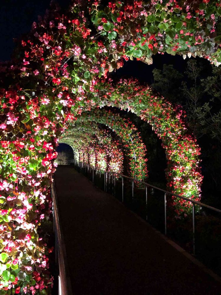 このpicは蒲郡ラグーナの夜のイルミネーションの時に撮った、フラワーゾーンのベゴニアのアーチです。たぶん、ベゴニア⁉︎