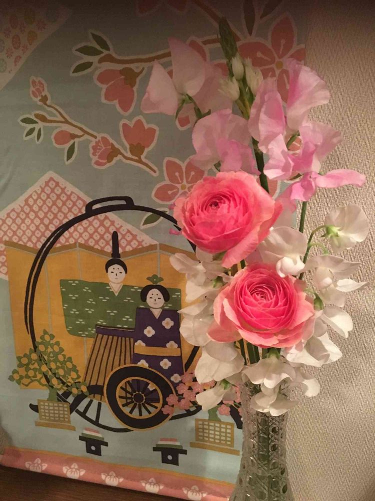 桃と菜の花の定番も良いですが我が家は好きなお花でひな祭り🎎💕