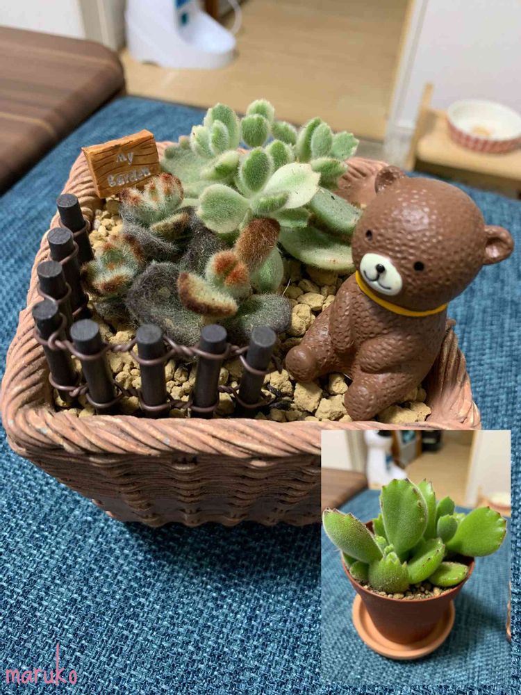 先日作った二つの熊さんのsmall garden🍀 そして今日HCででっかいお手ての熊さんを発見🐻💦右下の子