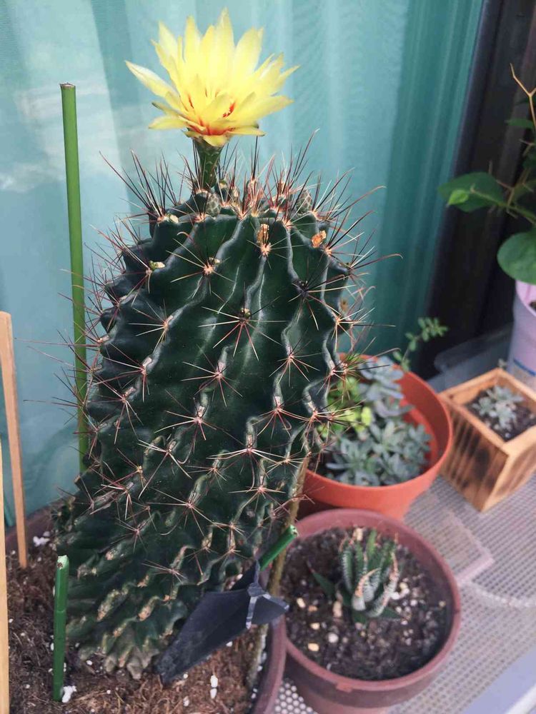 何年ここにいるのが分かりませんが 今年始めて 何回も花を咲かせて楽しませてくれます😊💕 サボテンの名前が分かりません 誰がわかりませんか?お願いします🤔‼️