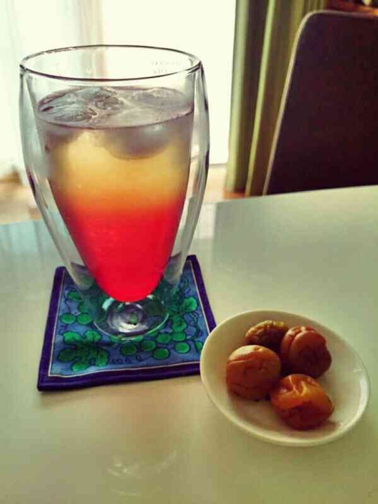 母作のウメジュースと自作シソジュースのミックス。