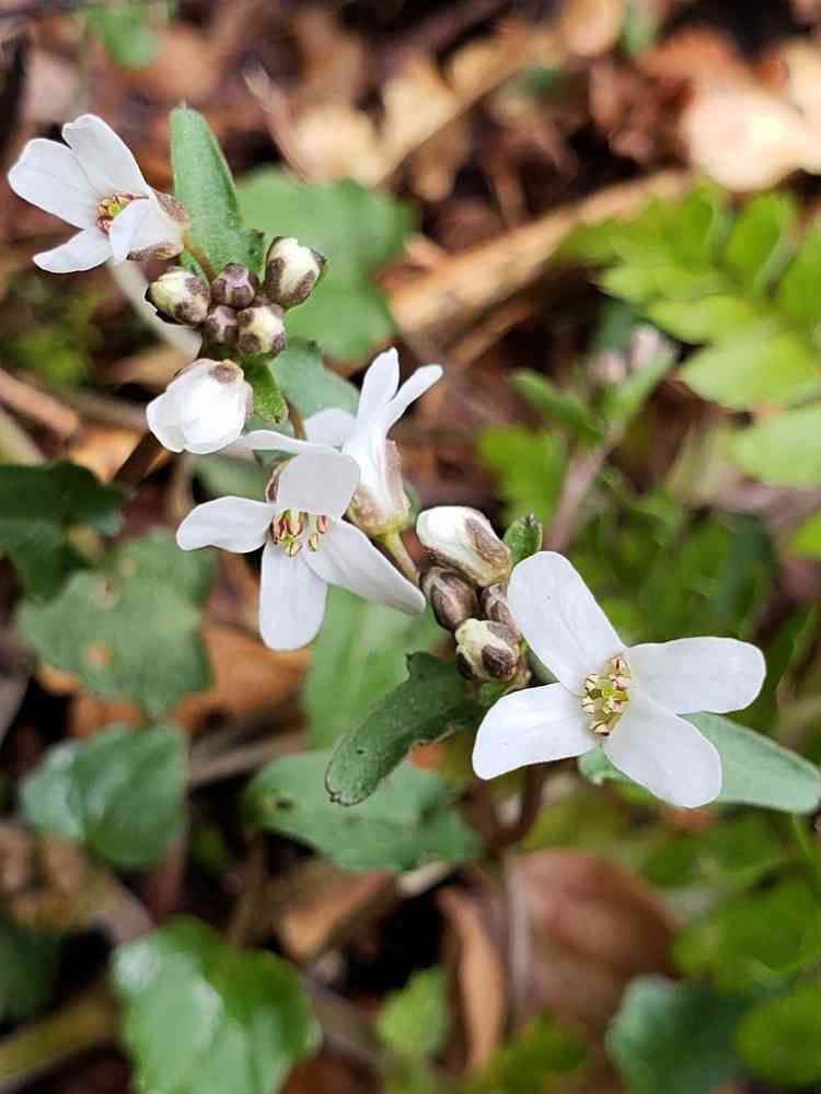 幾つかの花目当てで先日福岡の井原山⛰️に登りました。この花もその一つだったのですが登り始めてすぐにもう発見って近寄った花は「タネツケバナ」でした。アブラナ科の花のそっくりさを改めて感じた山登りでした😁