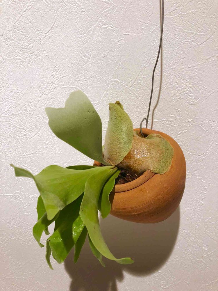 結局、多肉ちゃんを2つ(また別日にアップします😁)それと、鉢と葉っぱのバランスが可愛くて(しかも安くて)お迎えしたビカクシダ😍